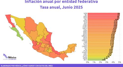 En la gráfica sobre la variación del INPC por estados y ciudades, el estado de Chihuahua no fue resaltado de forma especial.