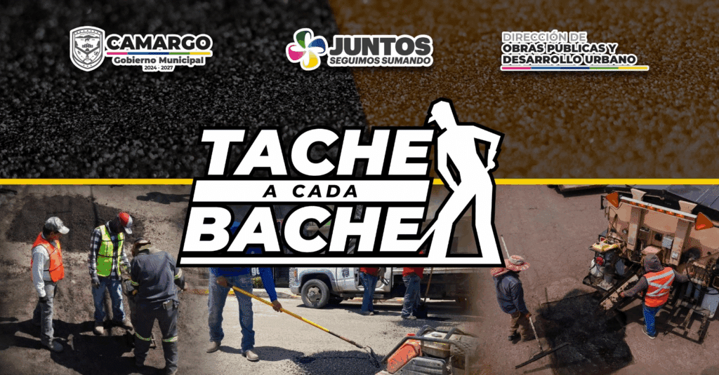 Después de una semana complicada por las lluvias, el Gobierno Municipal de Camargo reactivó el programa “Tache a cada bache” para atender de manera puntual las vialidades afectadas en distintos sectores de la ciudad.