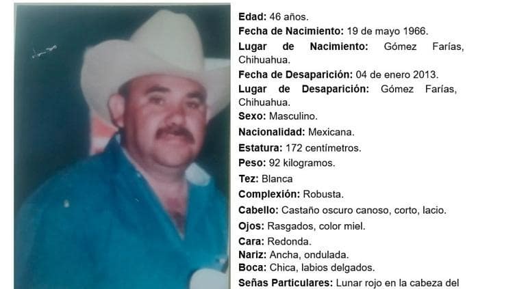La Fiscalía General del Estado de Chihuahua mantiene activa la búsqueda de Julio César García Erives, quien fue reportado como desaparecido hace más de 12 años, el 4 de enero de 2013, en el municipio de Gómez Farías, sin que hasta el momento se conozca su paradero.