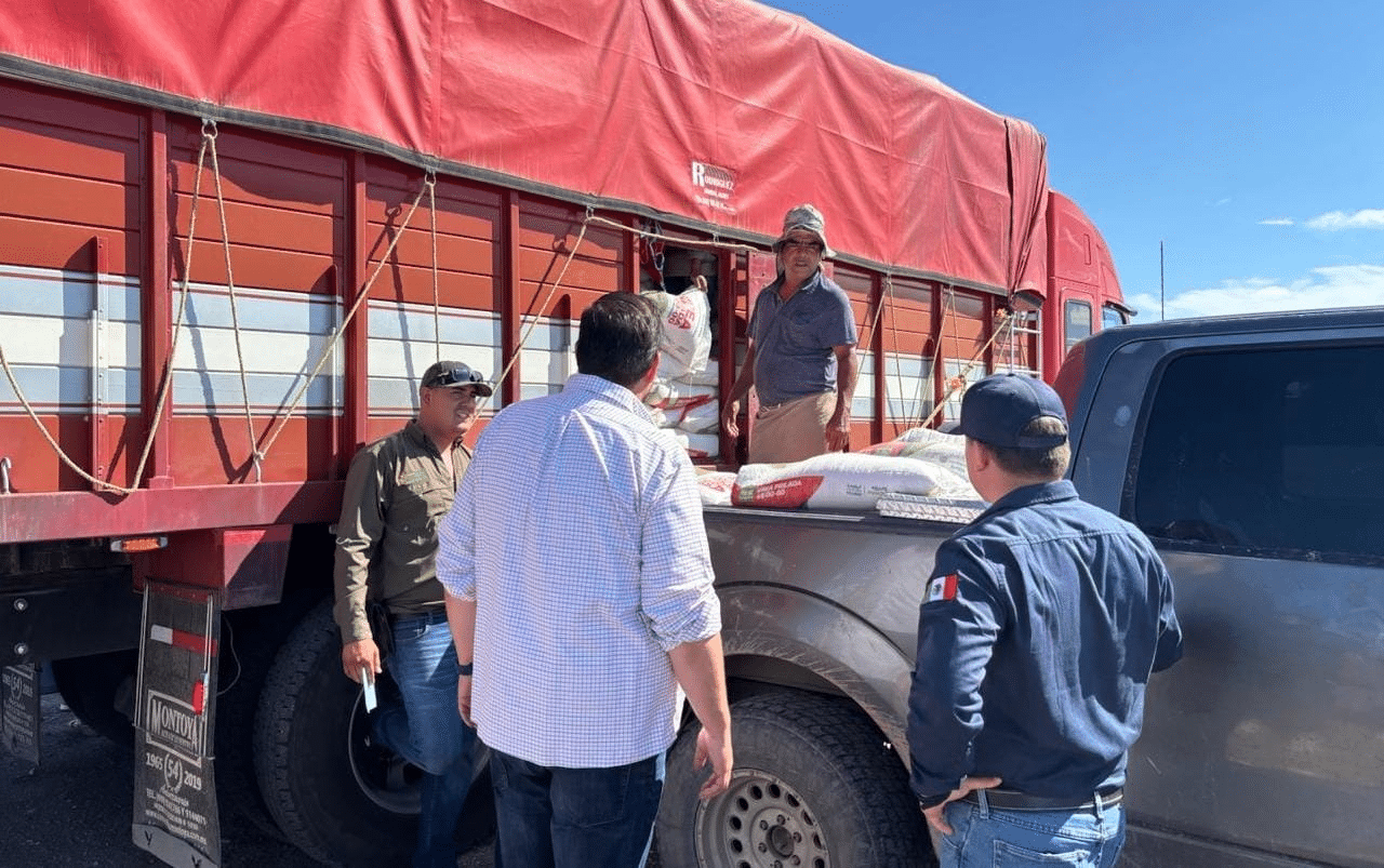 Camargo, Chih.- Con el objetivo de fortalecer al sector agropecuario frente a los desafíos que representa la sequía, esta mañana se llevó a cabo la entrega de 24 toneladas de fertilizante y 2 toneladas de semilla de avena a productores agrícolas del municipio.