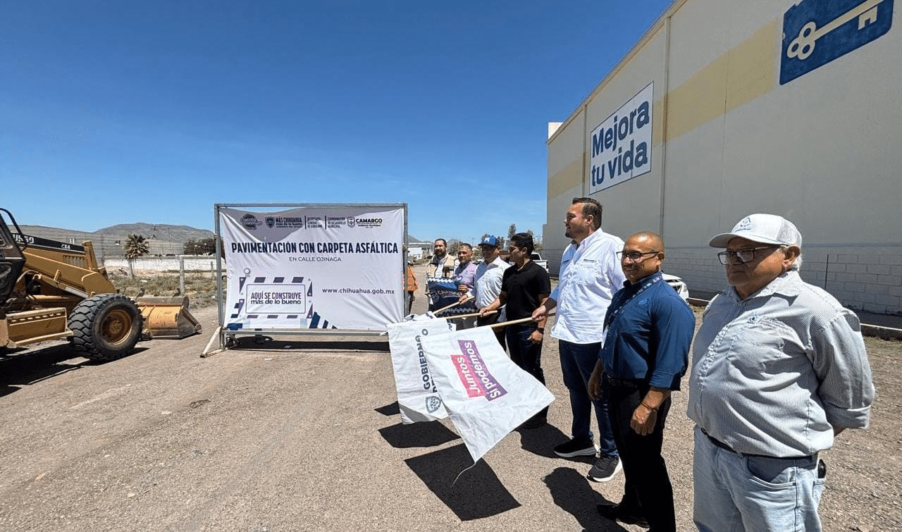 CAMARGO.- El alcalde Jorge Aldana encabezó el inicio de la pavimentación de la calle Ojinaga, proyecto que representa una mejora estratégica para una de las zonas de mayor desarrollo y tránsito en Camargo, donde se ubican el Hospital Regional, dos centros comerciales y diversos locales comerciales.