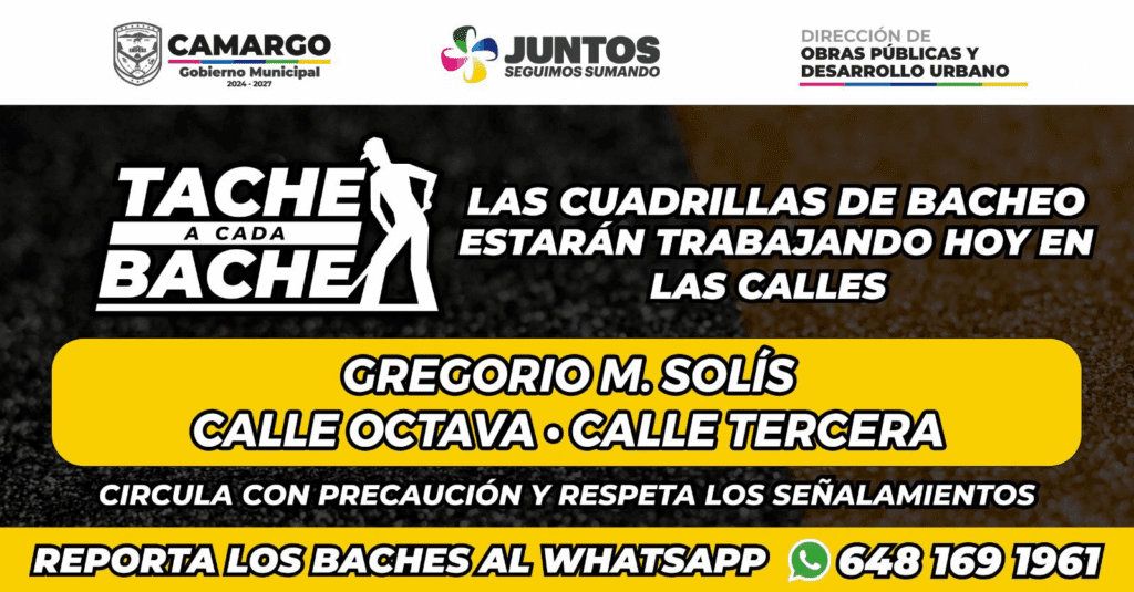 Les informamos que las cuadrillas de bacheo del programa “Tache a cada bache” estarán trabajando este martes en las siguientes calles: