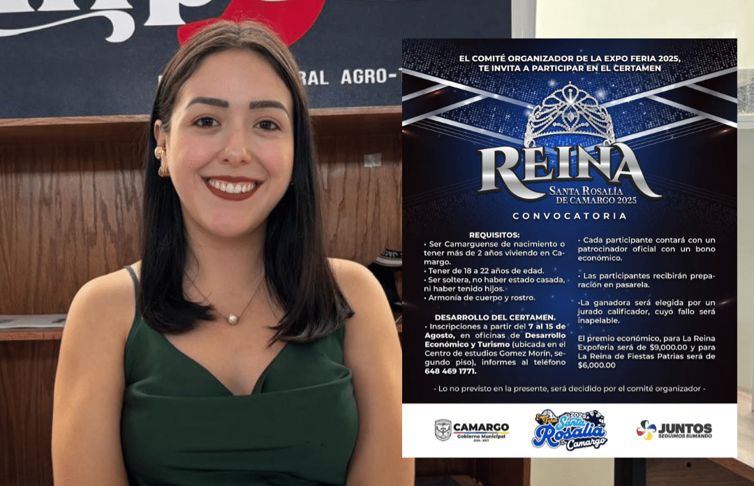 Camargo.- La Dirección de Desarrollo Económico del municipio, a cargo de Natalia Jácquez, anunció la apertura de la convocatoria para la elección de la Reina Santa Rosalía de Camargo 2025, invitando a todas las jóvenes interesadas a participar en esta tradicional celebración.