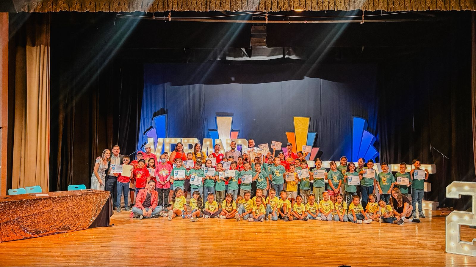 El DIF Municipal y el Gobierno Municipal de Camargo cerraron con éxito la Veraneada Municipal de este año en el Teatro de la Ciudad, donde niñas y niños demostraron lo que aprendieron durante las actividades con bailables, cantos y hasta tocando instrumentos musicales.