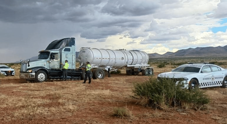 El Ejército Mexicano aseguró dos pipas con combustible robado en el ejido El Mimbre. Las unidades, de 30 mil litros cada una.