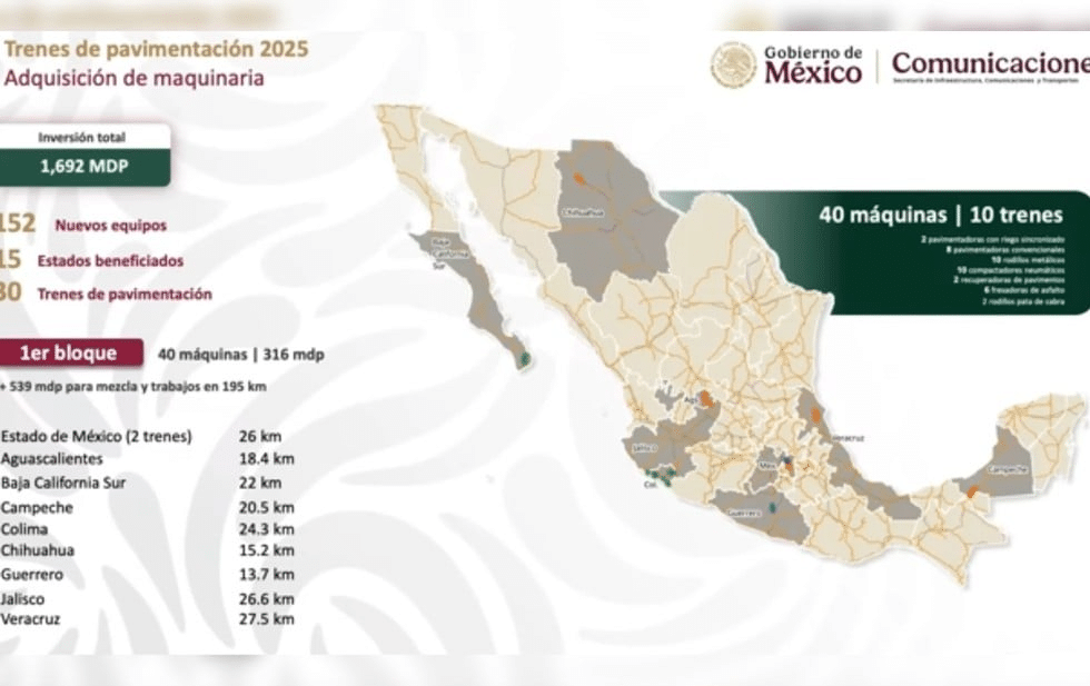 Chihuahua, Chih.- El secretario de Infraestructura, Comunicaciones y Transportes del gobierno federal, Jesús Antonio Esteva Medina, anunció que dentro del programa Trenes de pavimentación 2025, están considerados 15.20 kilómetros de carreteras federales de un total de dos mil 627 existentes en Chihuahua, lo que representa .58% de dicho universo.