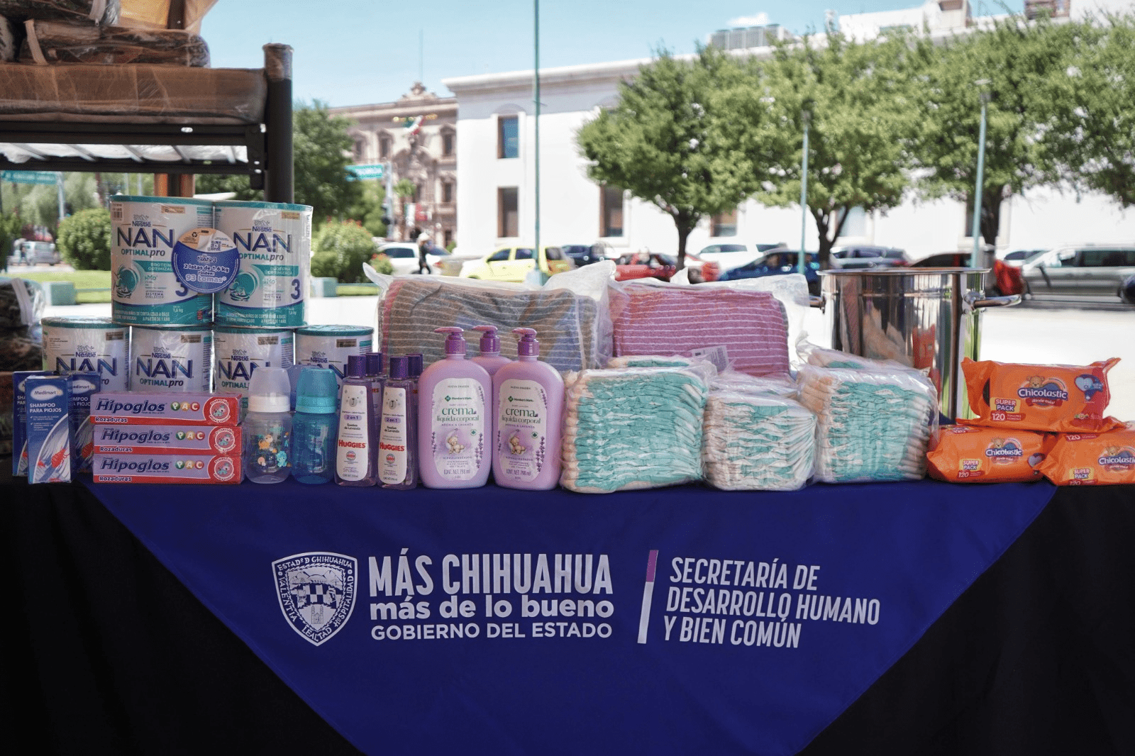 Para garantizar condiciones de higiene y cuidado de las familias, contienen jabones, champús, toallitas húmedas, paquetes de pañales en varias medidas, cremas corporales, pomadas para prevenir rozaduras, frazadas, biberones y fórmulas lácteas en distintas etapas.