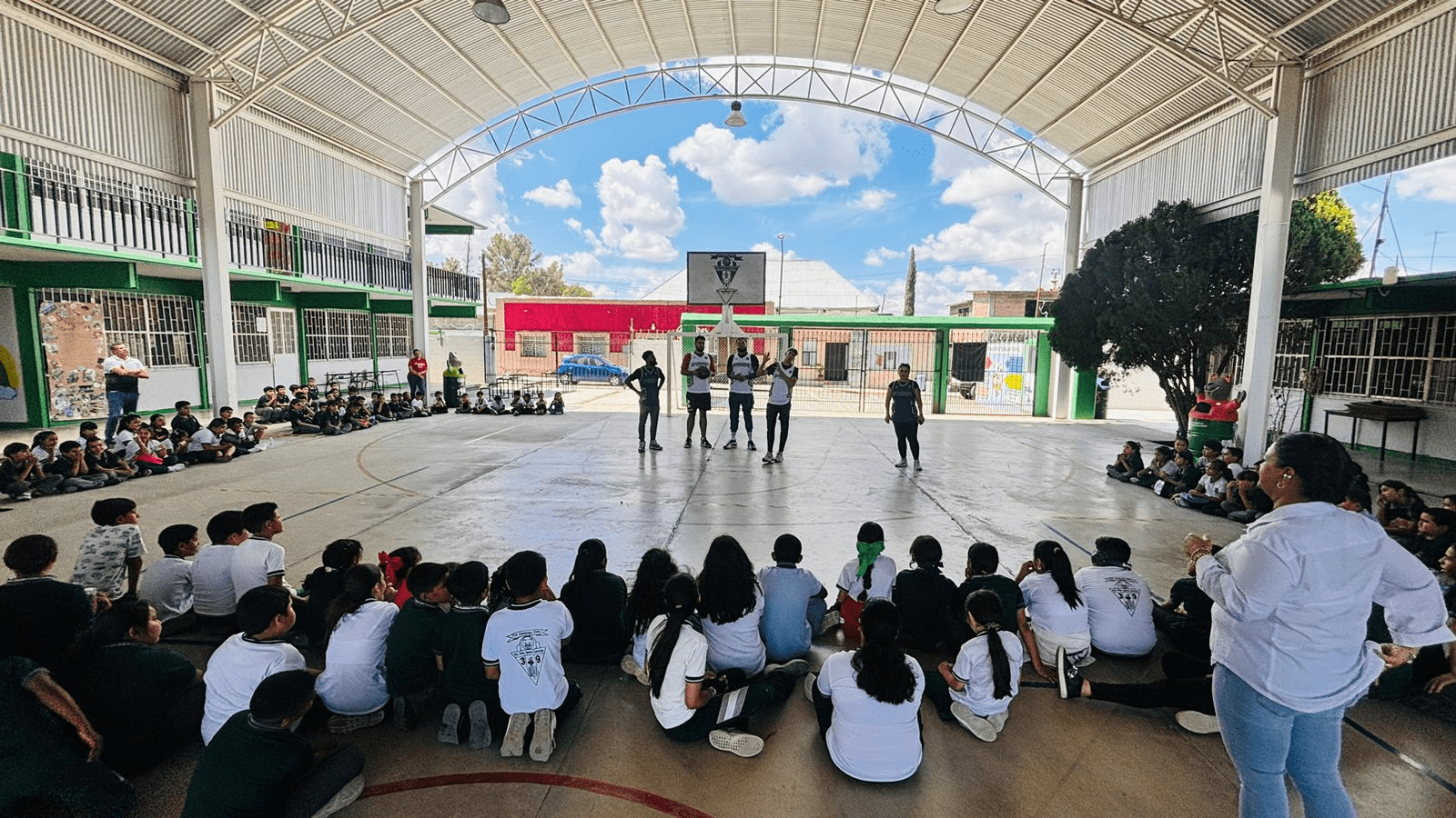 La jornada comenzó a las 11:30 horas en la Escuela Ignacio Camargo #2039, donde los jugadores convivieron con los alumnos y compartieron experiencias sobre el deporte ráfaga. Más tarde, a las 12:10, el equipo continuó la dinámica en la Escuela Primaria 212, acercando el basquetbol a más niñas y niños.