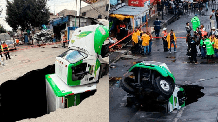 Un camión repartidor de una empresa refresquera cayó la tarde del sábado en un socavón en la alcaldía Iztapalapa, en la Ciudad de México y aquí te mostraremos cómo es dicho socavón.
