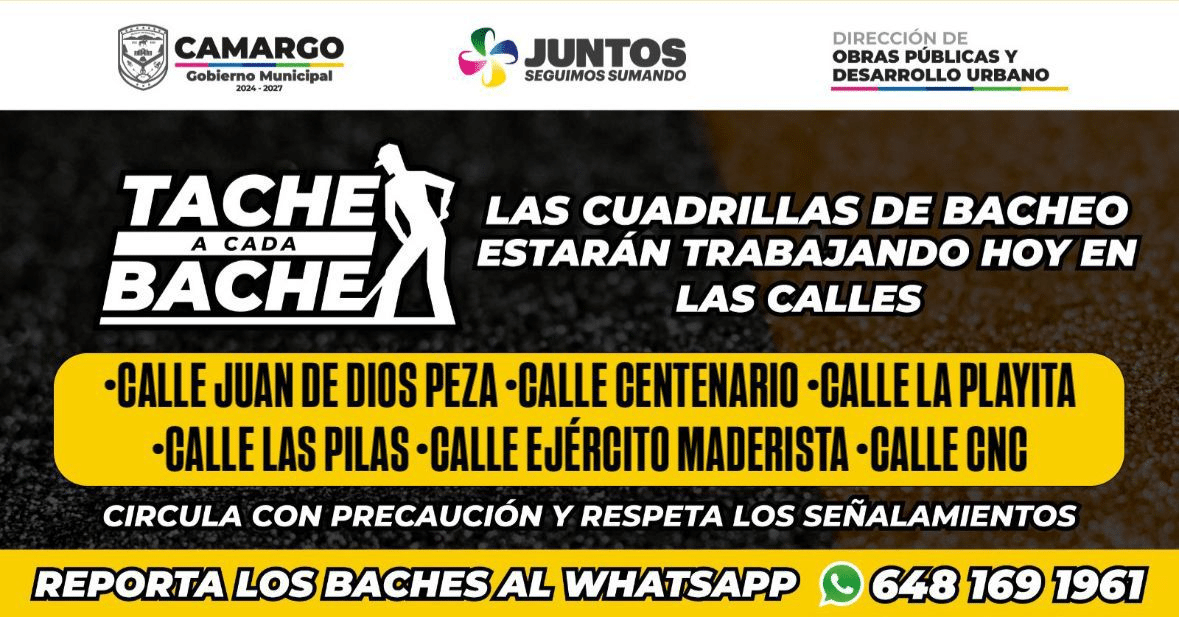 Con estas labores, seguimos avanzando para que Camargo tenga calles en mejores condiciones y una circulación más segura para todos.