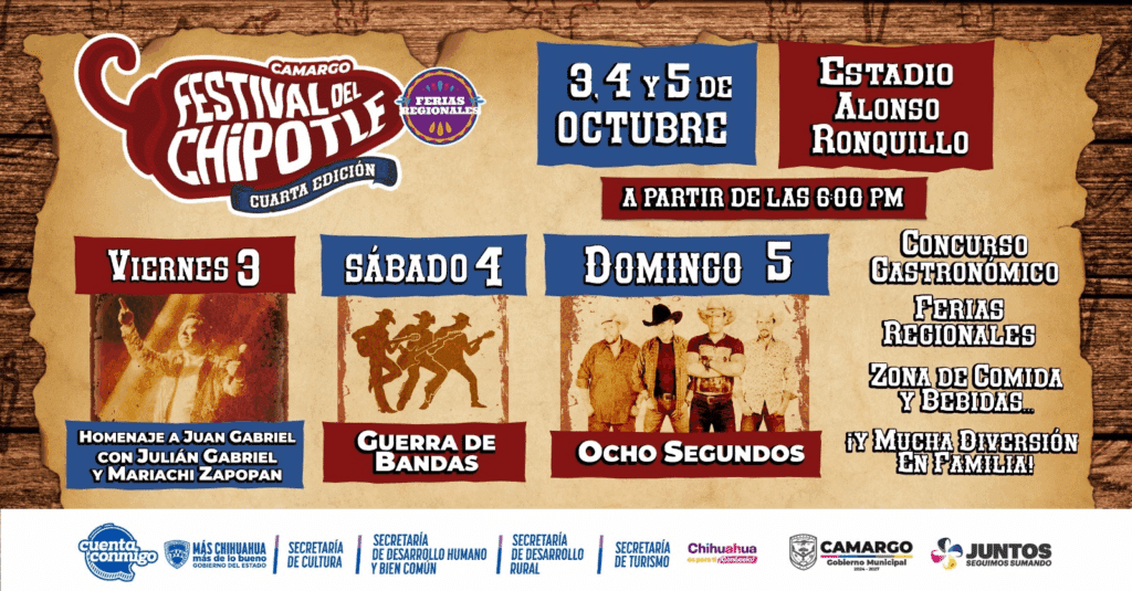 Los días 3, 4 y 5 de octubre, el Estadio Alonso Ronquillo será sede de la Cuarta Edición del Festival del Chipotle, una celebración que une gastronomía, cultura y tradición, con actividades diseñadas para disfrutar en familia.