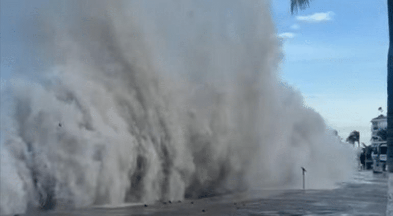 Esta mañana el huracán Priscilla se intensificó a categoría 2 en la escala Saffir-Simpson, lo que provocó fuerte oleaje en Puerto Vallarta y otras playas.