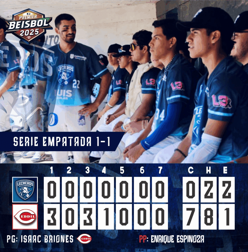 Ataques de tres carreras en primera y tercera entrada y una sólida apertura de Isaac Briones llevo a Ceddil a empatar la serie al imponerse por score de siete carreras por cero.
