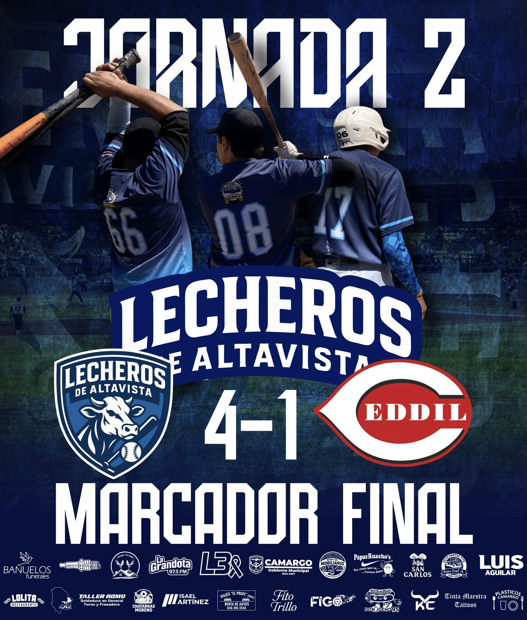 - Lecheros: 4 carreras, 8 hits, 0 errores