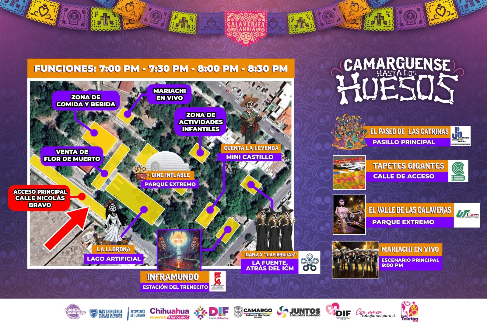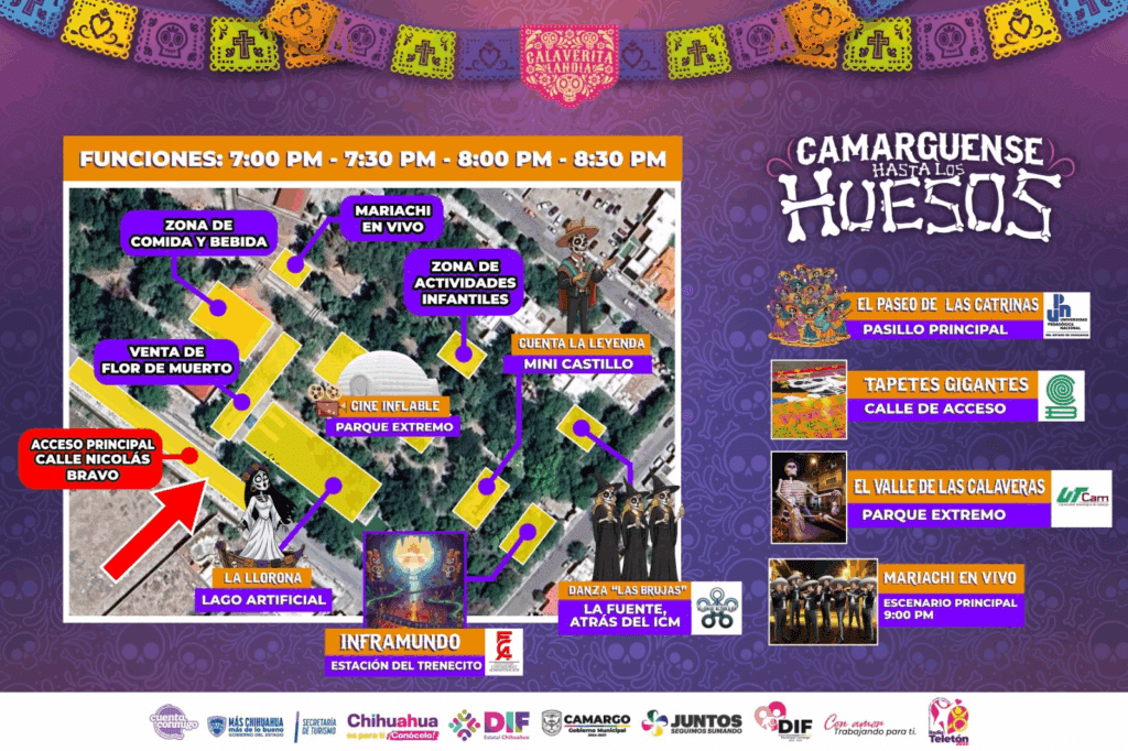 El Gobierno Municipal de Camargo invita a todas las familias a disfrutar hoy del gran evento “Camarguense hasta los Huesos”, una celebración llena de cultura, música y diversión para honrar nuestras tradiciones del Día de Muertos.