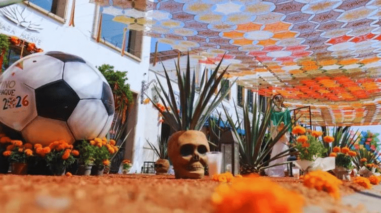 Inspirado en la pasión por el fútbol, el altar rinde homenaje a las Copas Mundiales celebradas en México en 1970 y 1986, además de incluir detalles que reflejan la esencia jalisciense, como el mariachi y las flores tradicionales.