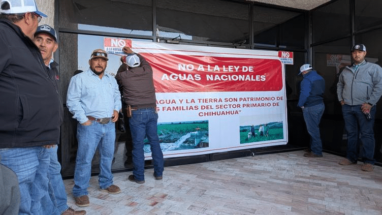 Agricultores de diversos municipios de Chihuahua se manifestaron pacíficamente este martes afuera de las instalaciones de la Comisión Nacional del Agua (Conagua) en la entidad.