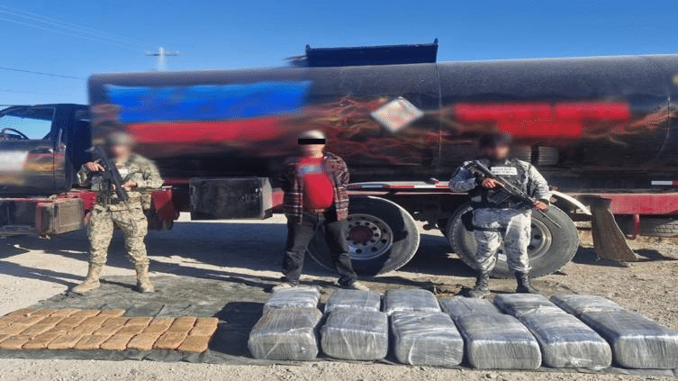 El Gabinete Nacional de Seguridad informó que elementos del Ejército Mexicano detuvieron en Ciudad Juárez a una persona que transportaba 127 kilos de marihuana y 49 kilos de goma de opio, además de asegurar el vehículo en el que se trasladaba.