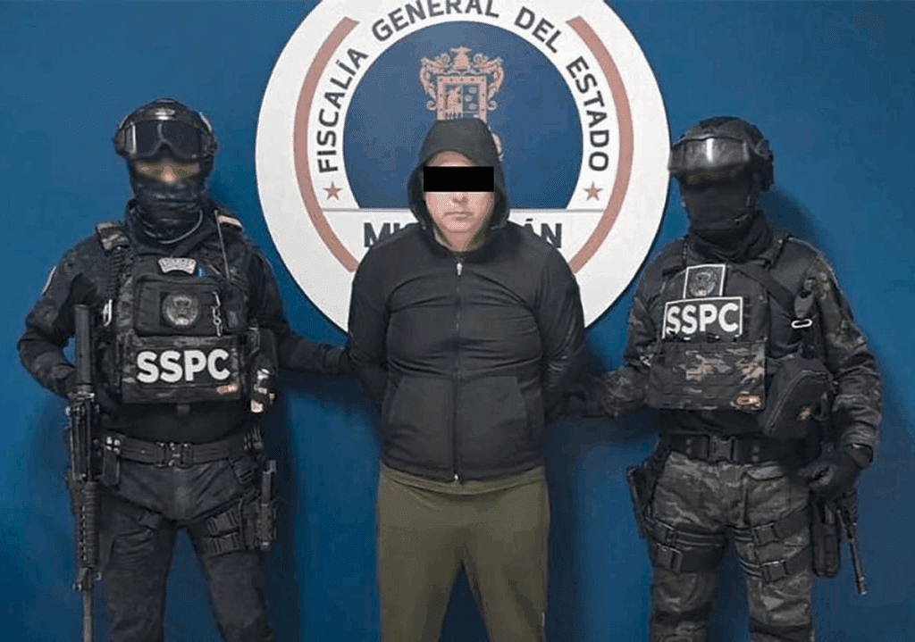 En la sede de la SSPC, junto con el fiscal general de Michoacán, Carlos Torres Piña, explicó que Jorge Armando N fue ubicado en la colonia Centro del municipio de Morelia, donde fue detenido en un operativo coordinado por el gabinete de seguridad, con la participación de autoridades estatales.