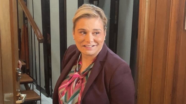 Después de presentarse la situación durante el desfile cívico- militar, la gobernadora reaccionó durante el mismo evento e hizo un gesto al levantarse del asiento.