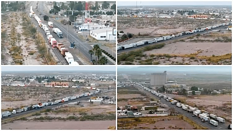 La presencia de manifestantes provocó el cierre total de cuatro carreteras en el estado de Chihuahua este jueves, con afectaciones severas en el flujo vehicular, principalmente en el municipio de Camargo, donde la fila de tráileres alcanzó más de 8 kilómetros de longitud.