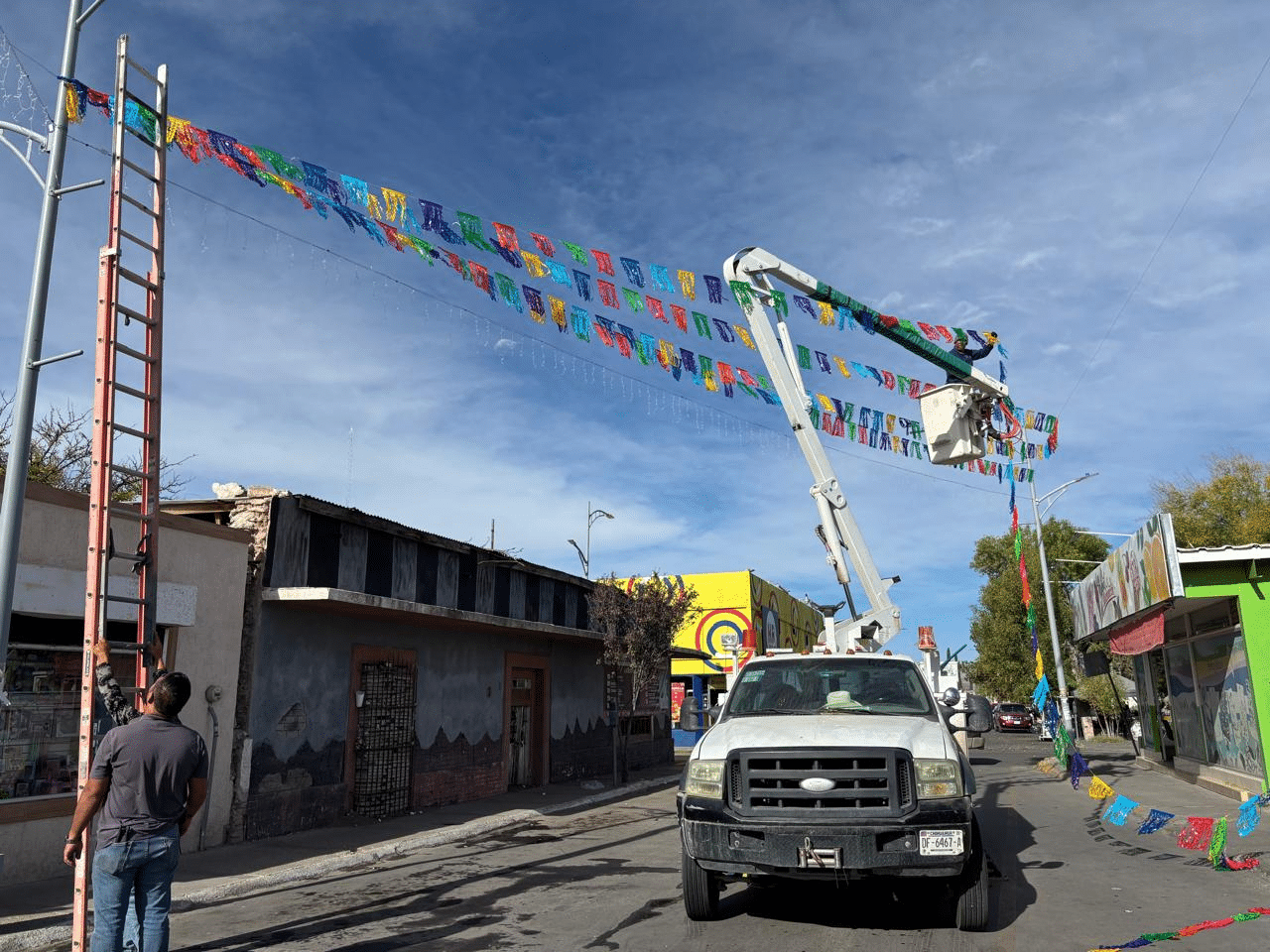 CAMARGO, CHIH.— A pocos días de iniciar formalmente la temporada navideña, el municipio comenzó la instalación de luminarias en la calle Guerrero, donde ya se observa movimiento de personal y comerciantes colaborando para transformar el corazón de la ciudad.