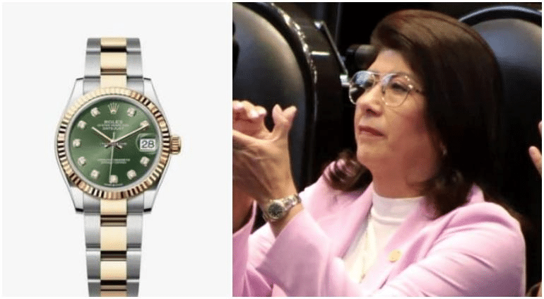 El periodista Jorge García Orozco señaló que la legisladora portaba un reloj Hublot Big Bang One Click, cuyo precio ronda los 400 mil pesos.