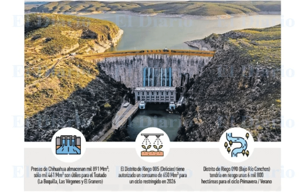 En el Distrito de Riego 090 (Ojinaga) serían cultivables cerca de 6 mil 800 hectáreas, por lo que “otra opción podría ser extraer hasta 80 Mm3 de El Granero e indemnizar a los campesinos por las pérdidas”, opinó la fuente.