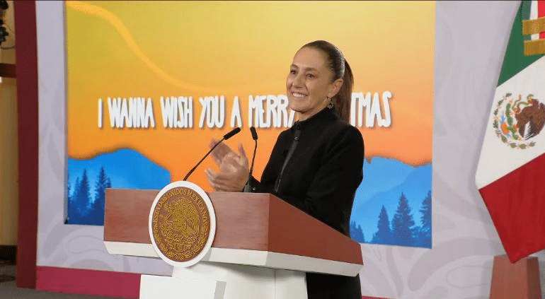 La Presidente Claudia Sheinbaum Pardo hizo entre los asistentes del Palacio Nacional una votación sobre si en Nochebuena ofrecería conferencia.