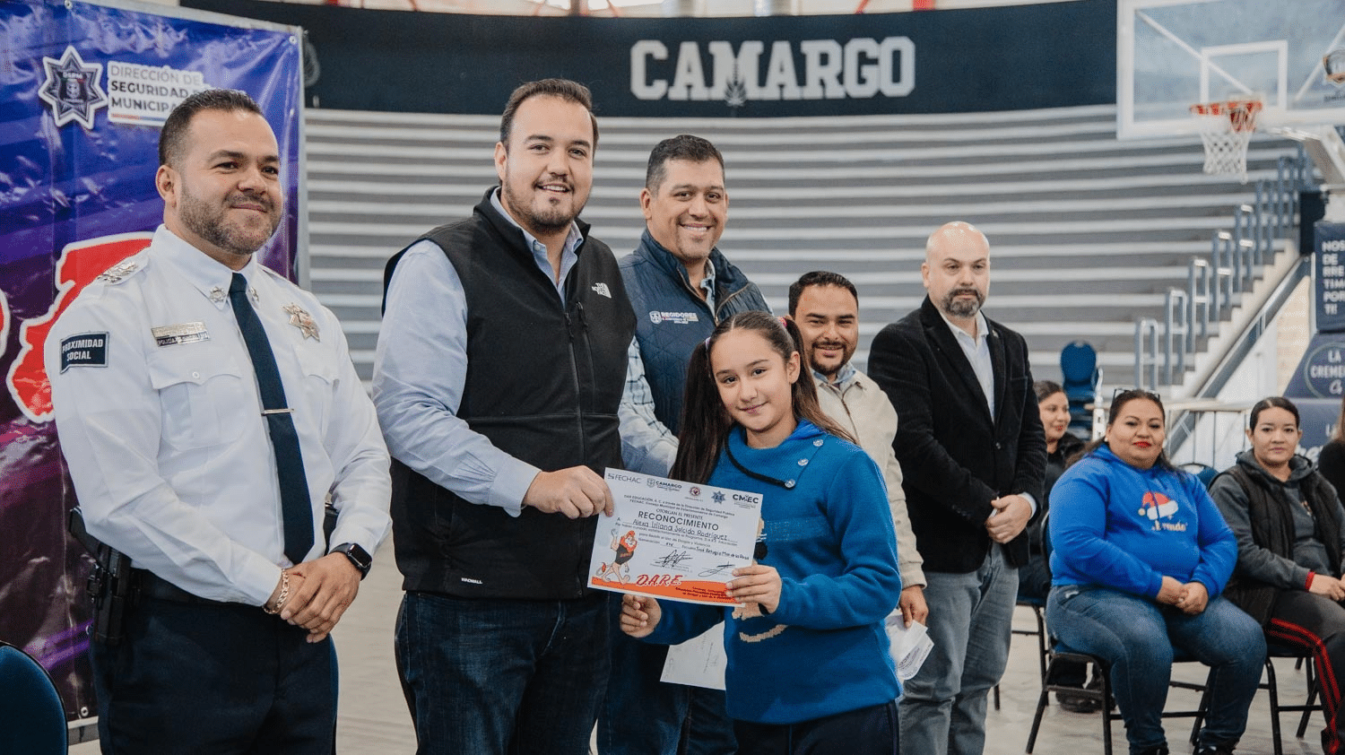 El presidente municipal de Camargo, Jorge Aldana, encabezó el cierre del programa D.A.R.E. (Drug Abuse Resistance Education), el cual se desarrolló con gran éxito en distintas escuelas del municipio como parte de las acciones permanentes de prevención delictiva y de adicciones.