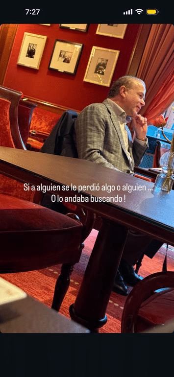 El periodista Sergio Sarmiento difundió a través de redes sociales una imagen del empresario en el bar Vendome del lujoso Hotel Ritz.