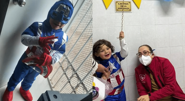 El pequeño Lennyn de 4 años logró vencer el cáncer y tocó la Campana de la Esperanza después de más de dos años de tratamiento.