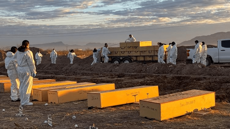 La mañana de este viernes, la Fiscalía General del Estado, a través de la Dirección de Servicios Periciales, realizó la inhumación de 60 cuerpos en el Panteón Municipal Número 4, en Carrizalillo.