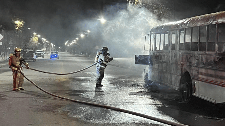 Un camión de transporte de personal fue incendiado durante la madrugada de este martes al llegar a Aldama, luego de que sujetos armados interceptaran la unidad cuando circulaba por la carretera proveniente de Chihuahua.