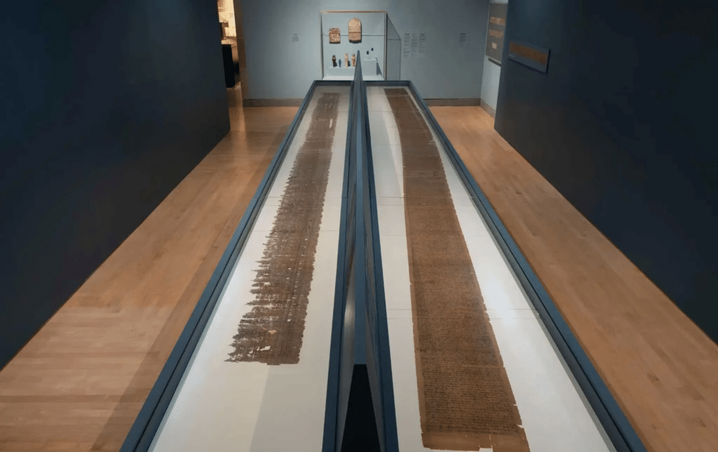 En aquel entonces no había periódicos ni páginas de obituarios. Pero la muerte de Ankhmerwer no pasó desapercibida. Fue conmemorada en un raro pergamino funerario intacto, con detalles en oro, de 6,4 metros de largo, conocido como el Libro de los Muertos. Este tipo de libros son unos 3.000 años anteriores a las páginas de obituarios de The Times. El pergamino de Ankhmerwer, sus amuletos de oro, sus plumas de caña y otros artefactos antiguos se exhibieron al público el mes pasado, quizás por primera vez, según los curadores, en las galerías egipcias del Museo de Brooklyn, para una exposición titulada » Desenrollando la Eternidad: Los Libros de los Muertos de Brooklyn «..